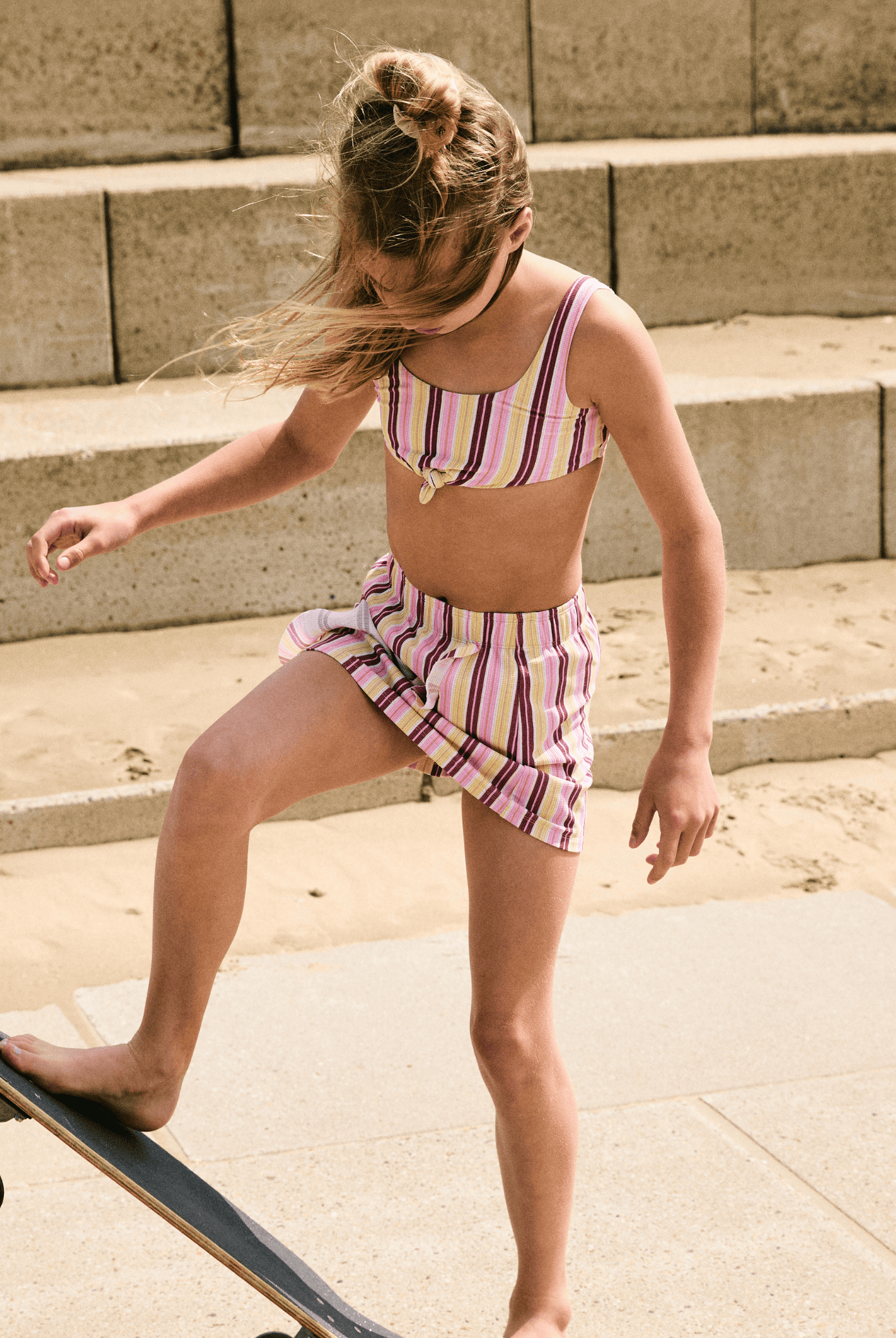De bikini voor meisjes is verkrijgbaar in de maten 98-104, 110-116, 122-128, 134-140 en 146-152 & 170-176. Er zijn in de meisjes collectie verschillende modellen bikinitops beschikbaar. Een schattige strik bikinitop, een stoere twist bikinitop of triangel bikinitop. Ook zijn er verschillende meisjes bikinibroekjes en shortjes waardoor je kunt mixen en matchen om de leukste zomerlook te creëren. Naast de printjes zijn ook de modellen bikinitops gebaseert op de bikinitops uit de Beachlife dames collectie. Bijvoorbeeld de twist bikinitop. Per leeftijdscategorie worden er veranderingen in de fit en details toegepast. Zo wordt er bij de broekjes voor baby’s rekening gehouden met een zwemluier én hebben de grote maten geen extra ruffles langs de zoom.