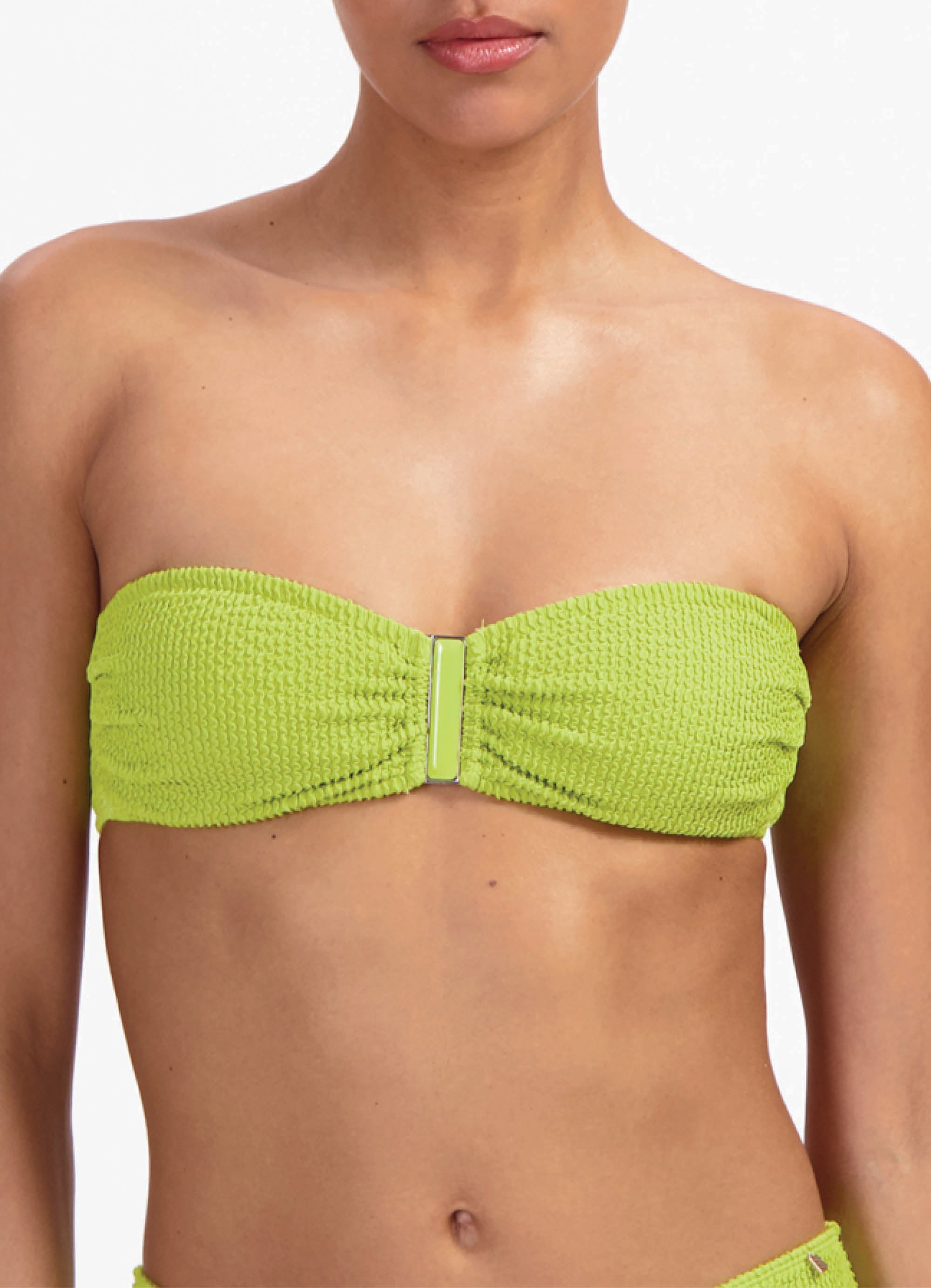 De swimweartrends van 2026 draaien om uitgesproken kleuren, subtiele glans en prachtige details. Je ziet veel groentinten als pistache, smaragd en mint. Roodtinten als dieprood, bessenroze en wijnkleurige tinten laten je opvallen in de zon. Ook stoffen met glitter, lurex of glas geven je beachlook net dat beetje extra en zorgen voor een fashionable fit. En de ‘Caramel Stripe’-print? Dat is een opvallende nieuwkomer dit seizoen.