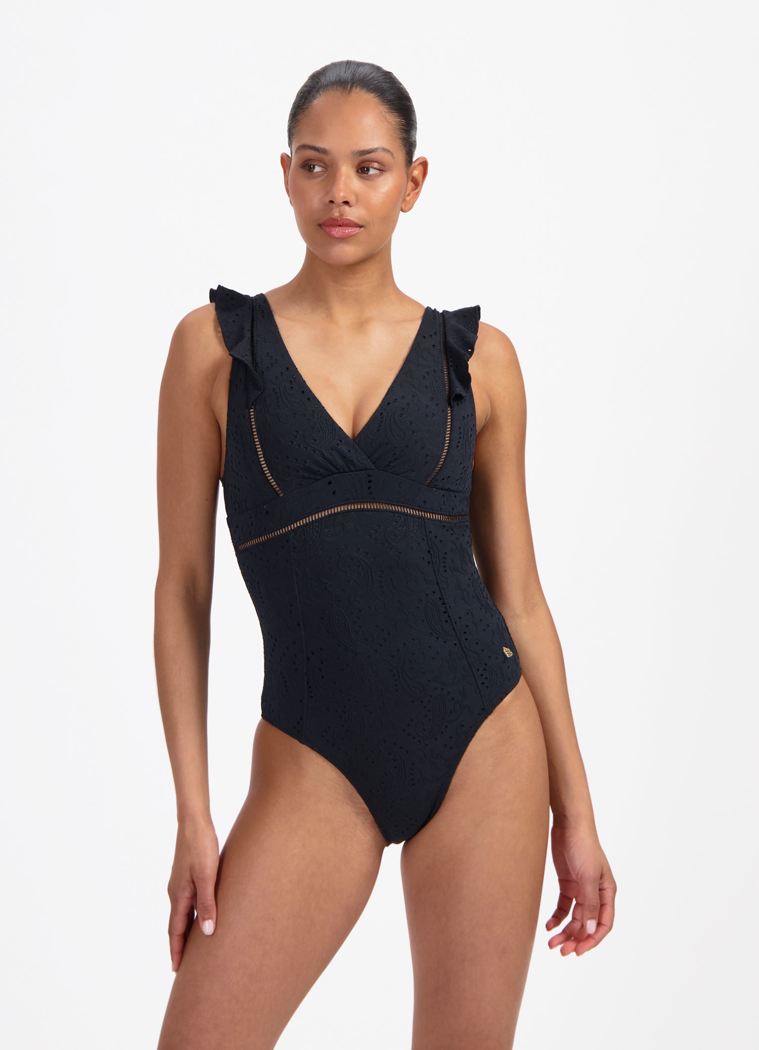 Black Embroidery ruches swimsuit