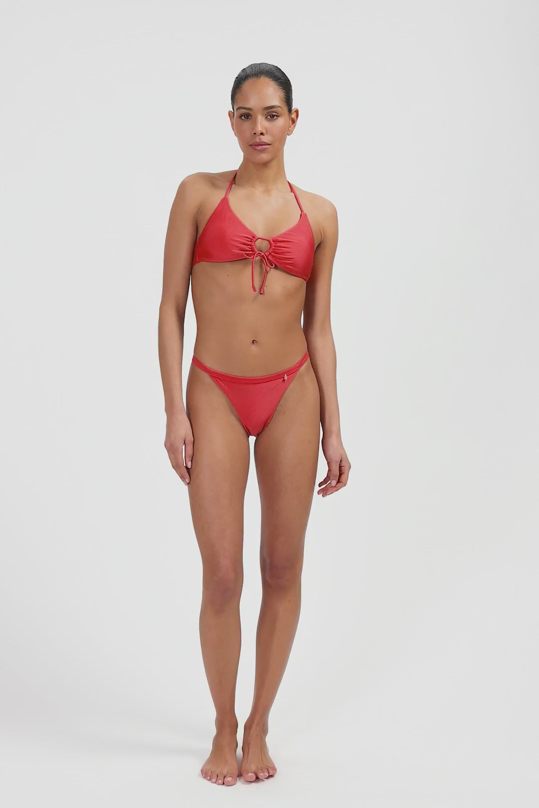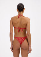 Red Shine string with ruffle bikini bottom