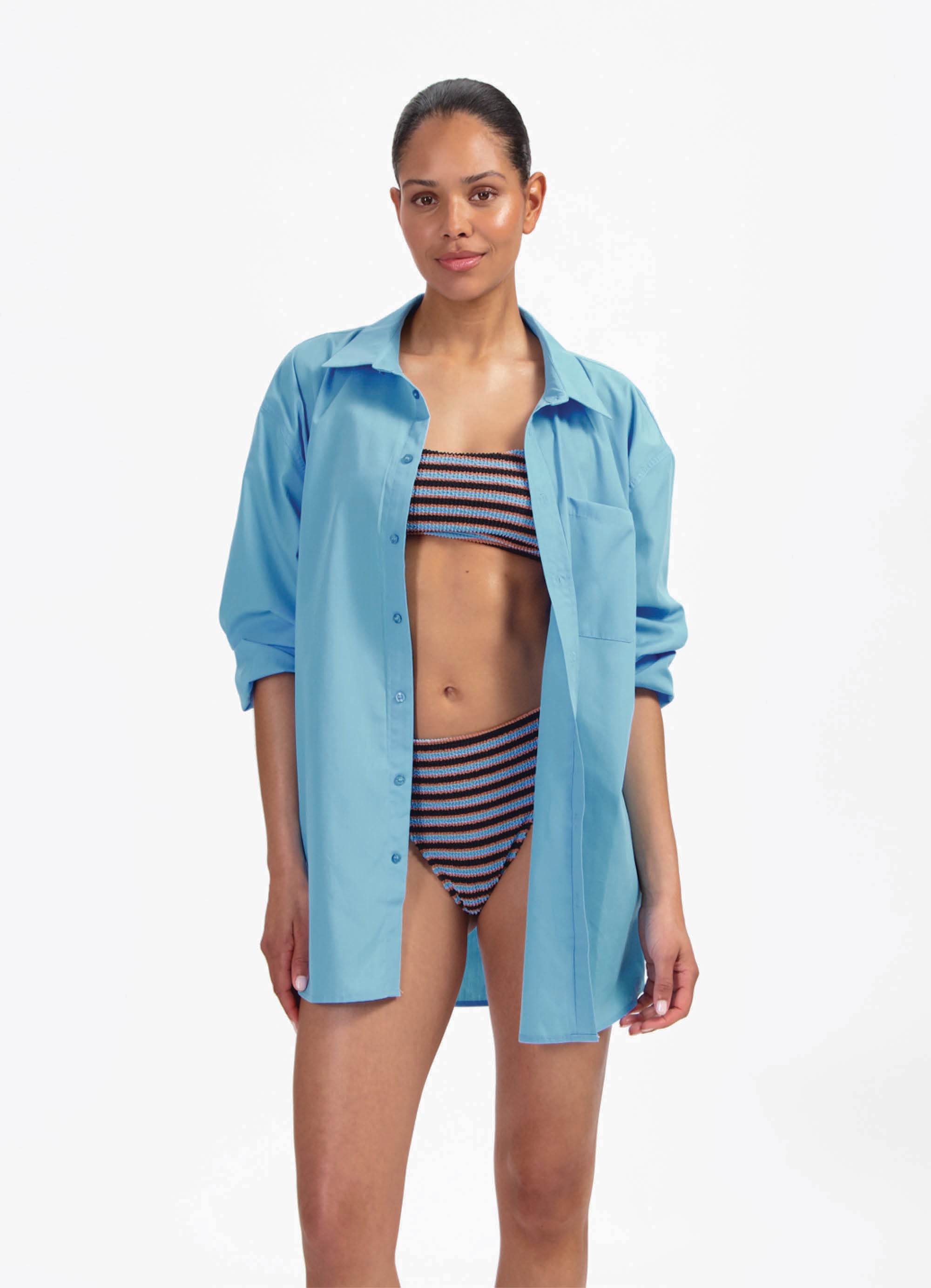 - Afgewerkt met zakje op de borst en knoopjes