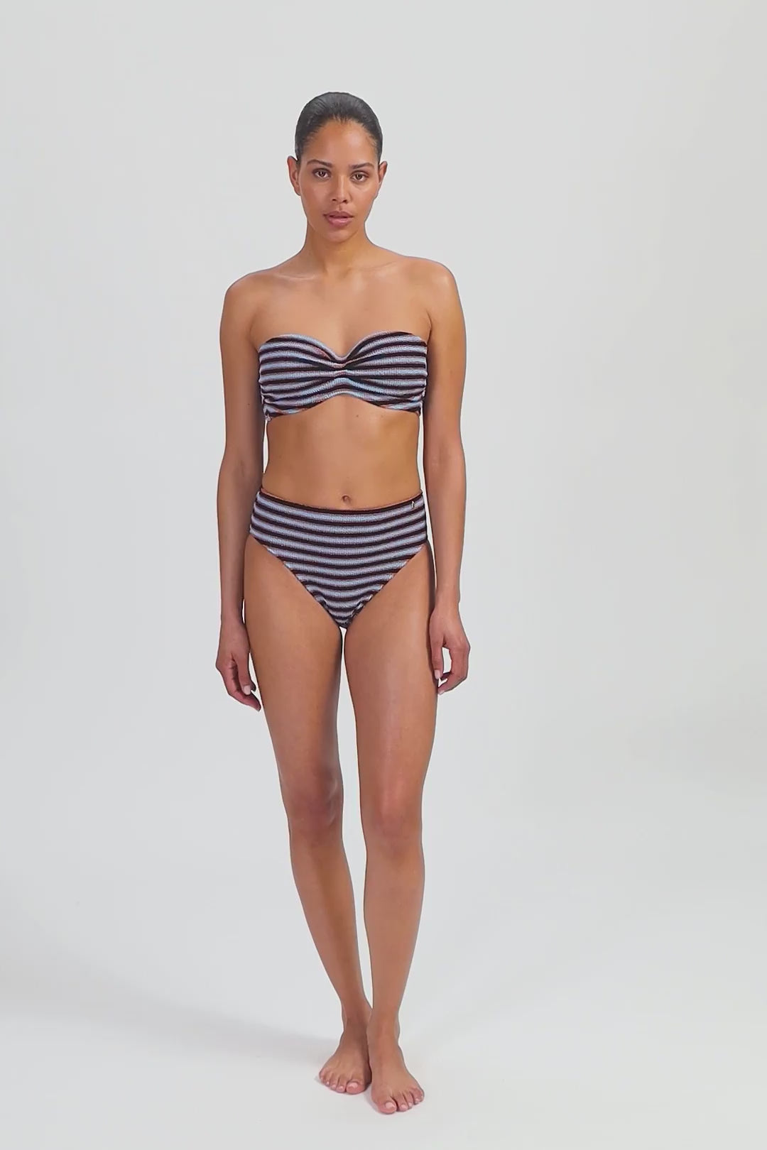 Blue Ribbed Stripe high waist bikinibroekje