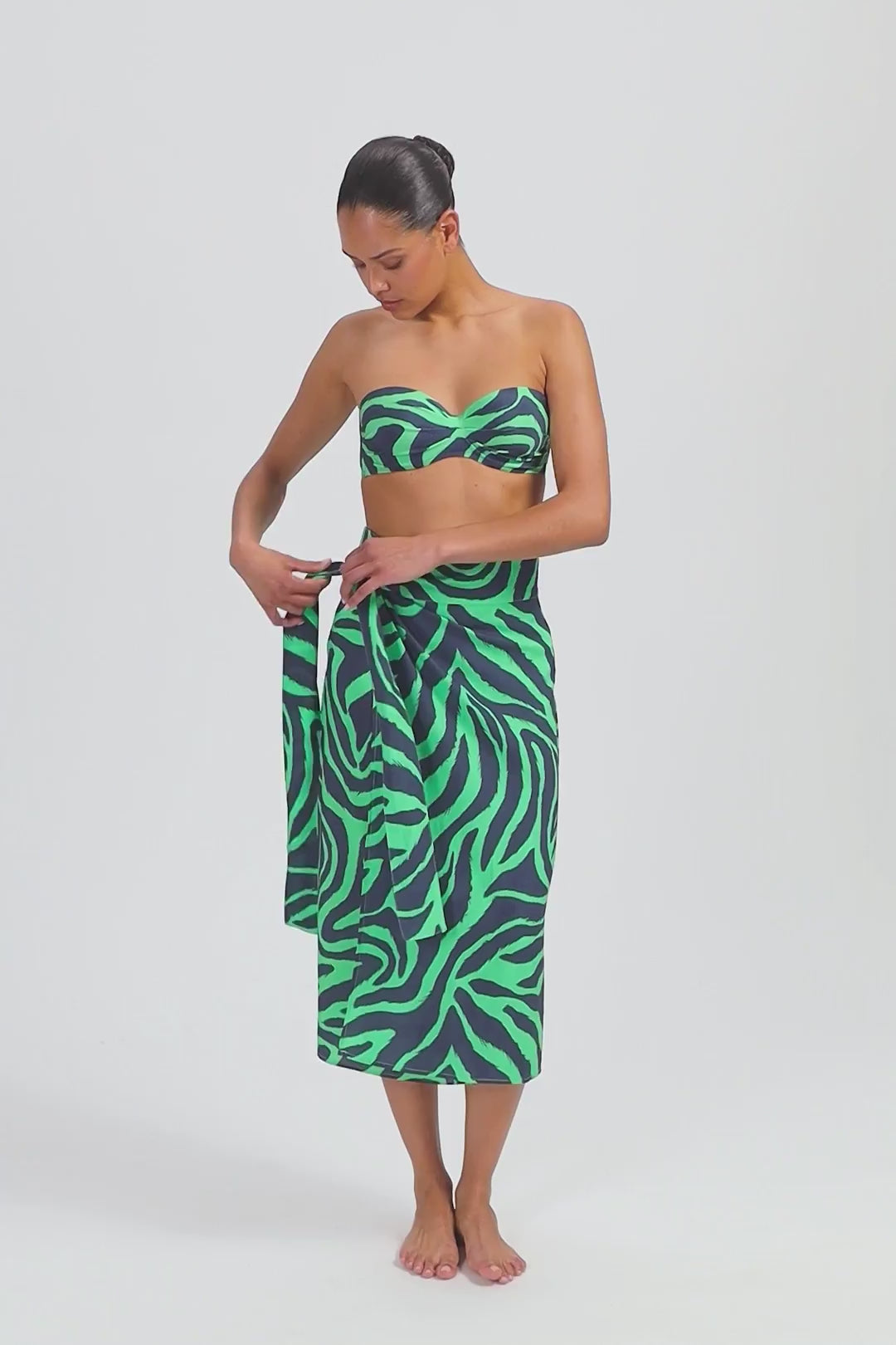- Strikband in de taille naar voorkeur te strikken