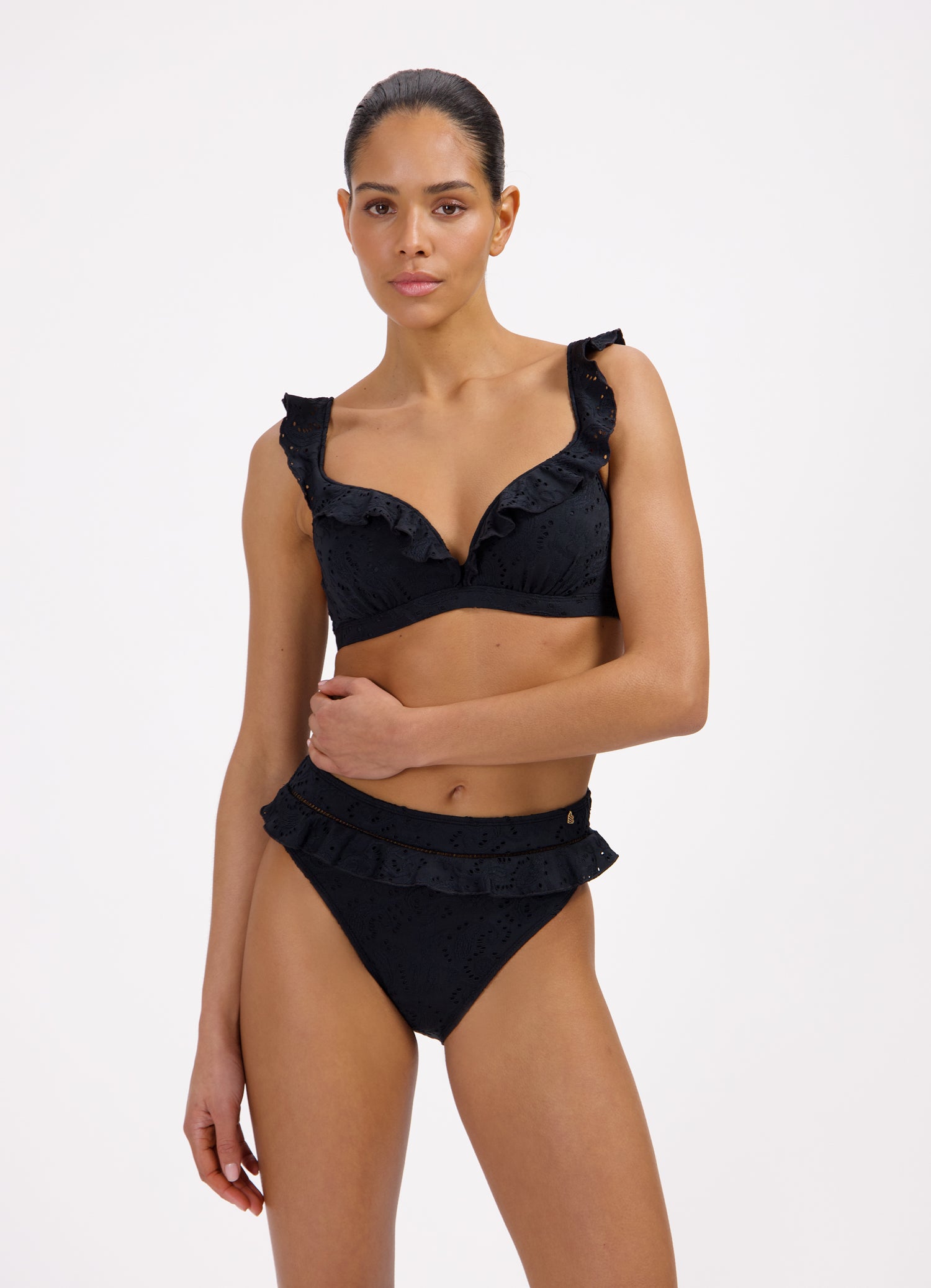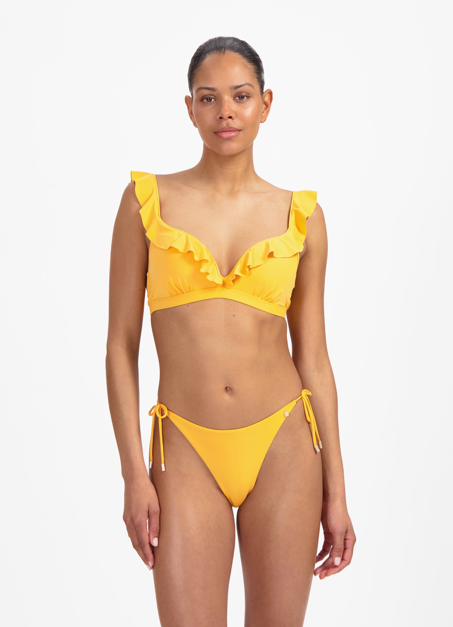 - Ruffels over de cups en schouderbandjes