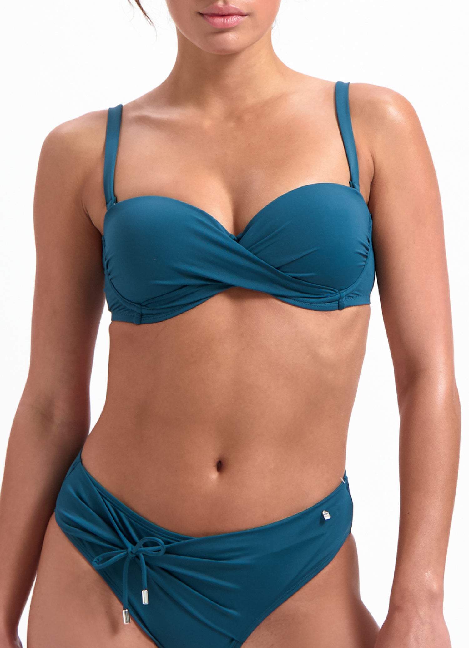 - Petrol groene kleur Stofmateriaal: 85% Recycled Polyamide en 15% Elastane